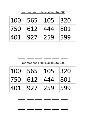 I can read and order numbers to 1000 by hayley76 ...