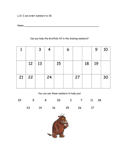 Gruffalo missing numbers worksheet to 30 | Teaching Resources