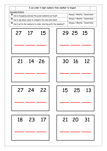 Ordering 2-digit / 1-digit numbers smallest to largest ...