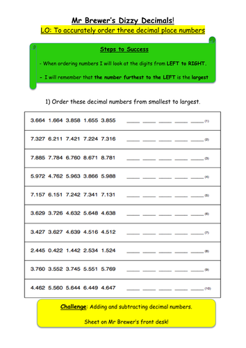 Ordering 3 decimal place numbers by ryan-brewer - Teaching ...
