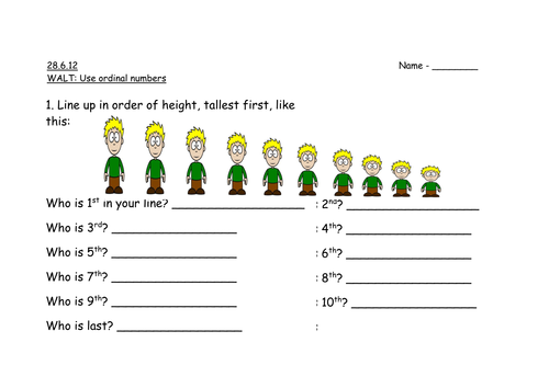All worksheets Only my followed users Only my favourite worksheets Only my own worksheets. Write the missing ordinal numbers on the number line. Worksheets and solutions to help you learn and practice ordinal numbers, first, second, third, fourth, fifth, sixth, seventh, eighth, ninth, tenth.