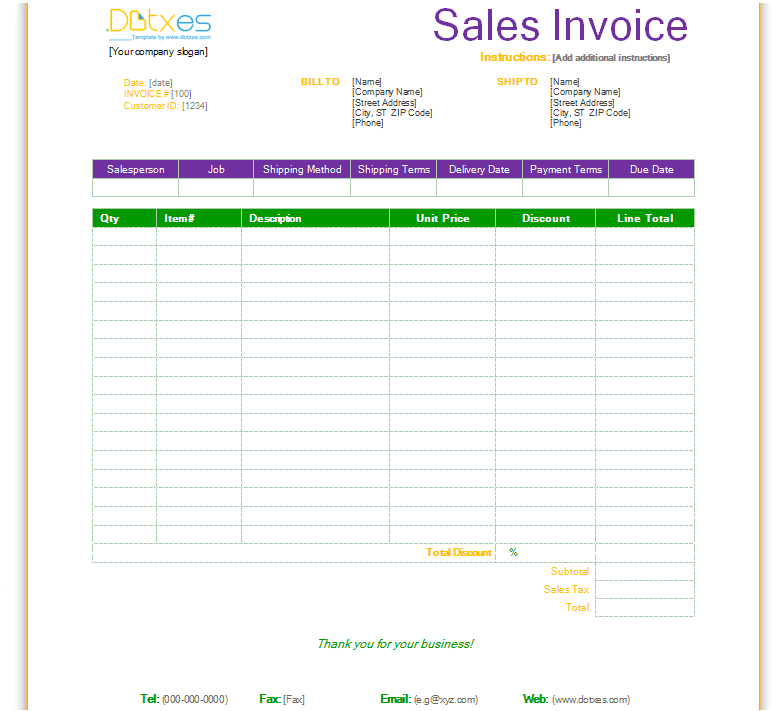 Free Invoice Template for Word, Excel, OpenOffice and ...