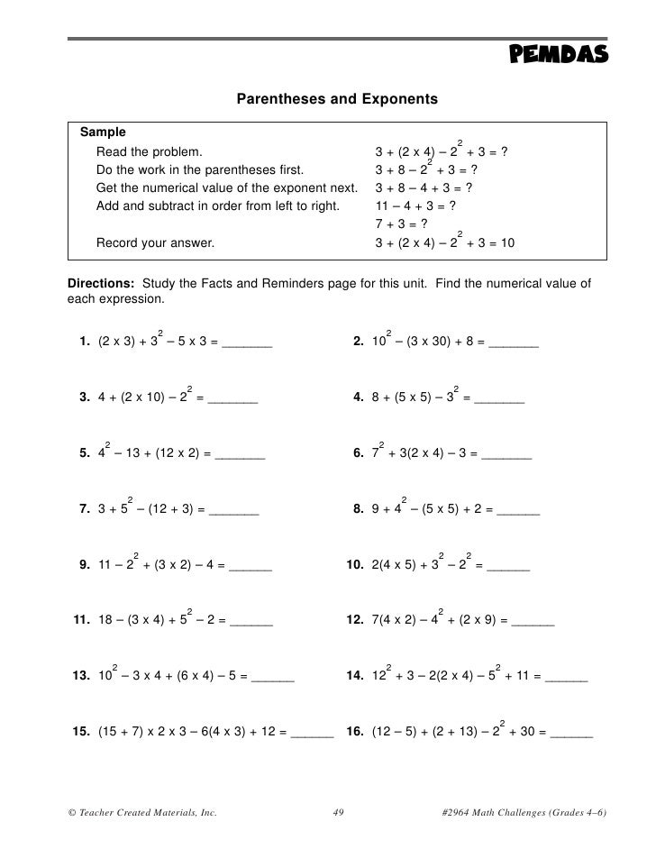 Order of Operations Worksheets - Free Printable Worksheets ...