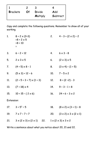 Order Of Operations Worksheet Year 6. Apply the order of operations on expressions involving three whole numbers or integers. Order of Operations worksheets using whole numbers, decimals and fractions.