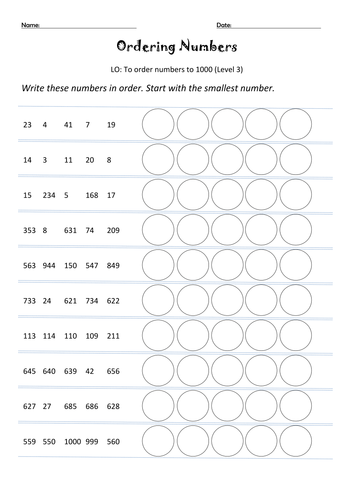 Ordering numbers to 1000 worksheet by chloevines ...